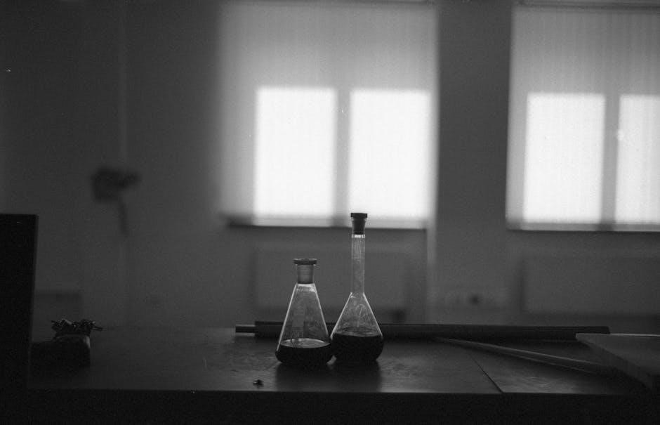 The study guide emphasizes fundamental definitions, the scientific method, and the importance of accurate measurements. Students will explore matter’s states and properties, alongside the distinctions between physical and chemical changes. Understanding these core ideas is vital for interpreting experimental results and applying chemical knowledge to biological systems.